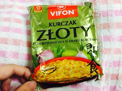・彼氏くんからもらったポーランドのインスタントシリーズそのさん Vifon。ベトナムの会社が作ってて多分中国産だけどポーランド人的には「うちの国の!」…って感じだとか ヴィフォン・ゴールデンチキンフレーバー 味は超普通。麺も普通。スープも普通。普通…