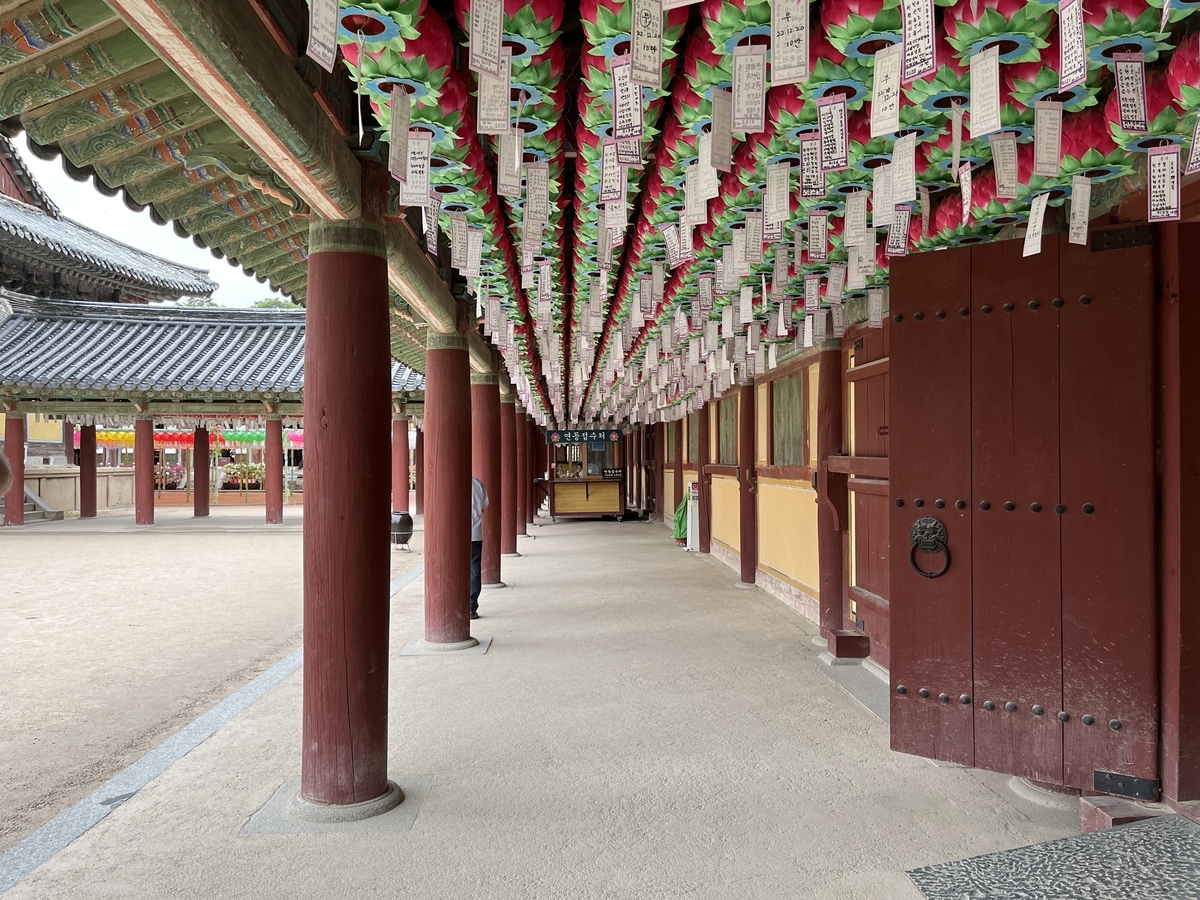 というわけで世界遺産仏国寺(ぷるぐくさ)へ。雨かつ平日、閉館間近で人も少なく。北朝鮮に行った時も思ったけど、朝鮮半島のお寺はカラフルで可愛いね