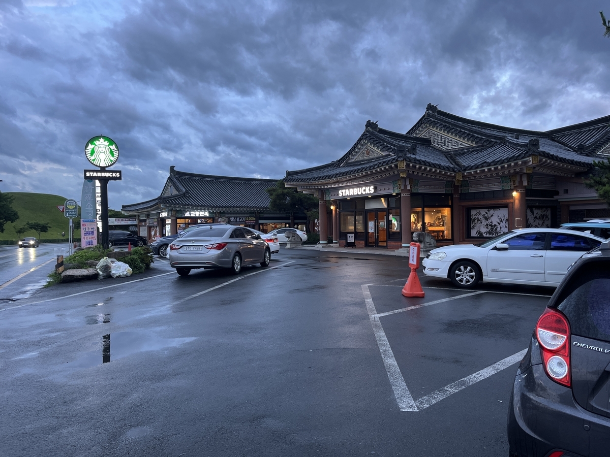 普段は激混みらしいが、雨かつ平日なので客は私たちだけ。慶州なかなか広くて、車でないと旅行が結構厳しい地域。しかもタクシーが高い!と居候。レストランの経営者のおばちゃんが、「タクシー呼ぶの?どこ行くんだい?」と言うので、「仏国寺に行きたい」と言ったら「送ってあげるよー!」とのこと。優しい!ありがとう!